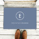 Um monograma simples com tipografia moderna em branco sobre fundo de cinza azul. O design apresenta um monograma inicial solteiro com uma borda redonda minimalista. O texto pode ser facilmente personalizado para atender às suas necessidades para o acessório de presentes ou papelaria perfeitamente personalizado!