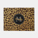 Envie uma boa vinda selvagem na porta da rua com este divertimento, impressão do leopardo, esteira de porta monogrammed! O presente home à moda da decoração para a diva em seu leopardo do falso da lista de compra mancha o fundo do teste padrão nas máscaras do tan e do marrom. É centrada a inicial elegante do monograma, coberta com o nome personalizado na cor do ouro. Seja esteira de porta bem-vinda perfeita para uma mulher sassy ou uma decoração bonito, feminino do dormitório ou um presente do housewarming para temas da decoração da selva.