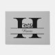 Neste tapete de porta distinto, o seu nome está escrito no centro de uma letra florescente dividida H. O nome e a letra estão em preto e são mostrados em fundo de cinza médio a leve. Você pode alterar a cor do plano de fundo, se quiser, escolhendo Editar Design. Você também pode alterar a fonte do nome. Elegância para a sua entrada!
