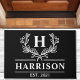 Bem-vindos convidados com elegância de eterno usando esta porta preta personalizada. O monograma na moda, nome da família e ano estabelecido, tudo exibido em uma fonte branca nítida, cria uma entrada acolhedora e personalizada. Feito com materiais duráveis, esta porta é perfeita para adicionar um toque de sofisticação à sua varanda ou pátio.
