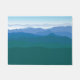 Bonita, simples, moderna e moderna, verde-desbotante-azul, vista de montanha ilustrada pelo Striped Hat Studio.
