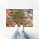 Este tapete de porta tem uma legal imagem de um muro de tijolos e algumas conchas marítimas nele.