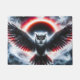 Majestic owl spreading its wings beneath a glowing celestial eclipse.