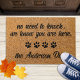 Bem-vindos a convidados com esta porta engraçada! "Não precisa bater, nós sabemos que você está aqui." Os Cães. Porta-Boas-Vindas - Matriz de Piso de Impressão de Pata-Cão. Coral natural e design preto com pegadas. COPYRIGHT © 2020 Judy Burrows, Black Dog Art - Todos Os Direitos Reservados.