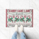 O tapete de porta de férias em branco apresenta um cartaz de estilo antigo "Candy Cane Lane" completo com canetas de doces embrulhadas em arco