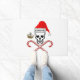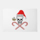 Crânio pirata vestindo chapéu de Papai Noel com YO-HO-HO escrito sobre isso. Um par de doces cruzados está debaixo do crânio. Inclui um navio pirata de Natal próximo ao crânio.