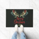 Porta mostrada em um verde-caçador muito escuro com um cartões de natal de "Natal Mooy" com galhadas algures, motivos de folha muito fracos e verde-Natal e galerias de fruta. Personalizar ou comprar conforme mostrado. Multiimpressão Verde e Vermelho. Imagem do stock freepik.com