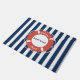 Um simples padrão listrado azul e branco marinho com o nome personalizado do barco. Design de tema náutico ideal para verão, barco, férias etc. Presente perfeito de barco, decoração de casa de praia, presente de capitão de barco, presente de aniversário, decoração de berçários, arte infantil, decoração de casa, presente de Natal ou presente para qualquer outra ocasião especial. Personalize o texto para seu nome de barco e torne-o seu próprio!