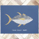 Atum divertido com um sorriso atrevido, num fundo azul marinho náutico. Arte original de Nic Squirrell. Altere o nome ou texto do barco para personalizar.