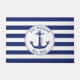 Adicione um toque náutico à sua casa com esta porta com uma âncora azul marinho com uma borda circular de corda. Personalize o texto com seu próprio nome de família e ano de estabelecimento. O fundo é marinho azul e listras brancas.