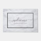 Uma porta elegante com um roteiro de cinzas escuras em um fundo de mármore. Personalize com seu nome de família ou texto.