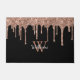 Aproveite este design elegante com seu nome e monograma ou inicial com gotas de glitter de rosa e glitter cinza sobre fundo preto.