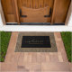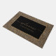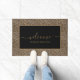 Elegante bem-vindo Doormat com um guião dourado sobre um fundo de cromo dourado preto. Personalize com seu nome de família ou texto.