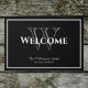 Nome do Script do Monograma Moderno: Porta de Boas-Vindas do Casamento Chic. O monograma personalizado inicial e o sobrenome e a data da noiva e do noivo são estabelecidos em fundo negro. Clique em Personalizar este modelo para personalizá-lo rápida e facilmente. Um presente bonito único para recém-casados. Adorável pela nova casa deles juntos. Navios no mundo todo rápido. Nome do Script do Monograma Moderno: Porta de Boas-Vindas do Casamento Chic. Criado pelo artista RjFxx *Todos os direitos reservados. #PersonalizadoFrontDoorMat #NewlywedsGift #ZazzleMade