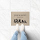 O costume adiciona seus próprios nomes do casal do casamento e data-os, silhueta preto e branco doce customizável do pardal/lovebirds do país gasto chique rústico de linho de serapilheira da juta do falso do teste padrão do pássaro do amor do ramo em um doormat chique - presente perfeito das andorinhas do noivado, do casamento ou do aniversário.