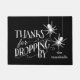 Abençoe seus convidados com esta porta de Dia das Bruxas assustadora! Design apresenta um fundo preto com "Obrigados para o Droping By" em tipografia branca estilo vintage, com duas aranhas entrando na ação. Personalize com seu nome familiar para um acessório de entrada de feriado que é exclusivo seu! Comprar itens correspondentes aqui: