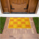 Esta porta tem uma design moderna do século médio que se parece com uma tecelagem com linhas vermelhas e amarelas num campo de ouro.