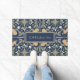 Wanting a cute orange theme for your home decor? Enhance your entrance by adding the Botanical Orange Blossoms Address Midnight Blue Doormat. Personalize it with your family's name, street address, or other text. The pattern has a muted color palette. The green and orange provide a soft appearance against the midnight blue background. The leaves, flowers, and oranges are outlined in a khaki shade.