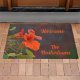 Bonita porta de boas-vindas, laranja fotográfica e verde, apresentando Nasturtum laranja brilhante contra um fundo suave de terra. Todo texto é personalizável para sua própria saudação e Nome da família.