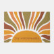 Um nome de família personalizado e ousado Boho ouro sunrise com terracota laranja amarela e raios solares verdes oliva. Negrito e olho pegando. Convide seus convidados com uma entrada ousada que seja alegre e brilhante.