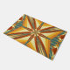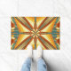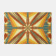 A porta impressa com o pôr do sol de Verão Ouro da Índia, com a imagem de design de trabalho de arte, por TheFabricSeal no Zazzle é uma bela e criativa pintura abstrato de padrão reproduzindo belíssimos raios solares de verão, juntamente com o deserto sudoeste vibrante e a arte indiana americana e cores com azul e verde azul-turquesa, amarelo, laranja, vermelho, marrom e creme.