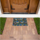 Porta de boas-vindas decorativa que mostra a foto de um padrão de pistas de penas de pavão. Utilizar no interior ou em áreas de acesso cobertas. Selecione o estilo e o tamanho da porta.