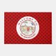 Baseado na minha pintura a aquarela, Snowy Cottage, uma pintura de um belo quadro de inverno de uma casa de telhado Inglês coberta de neve, com uma conífera decorada na frente da casa e um bonitinho bonitinho bonitinho a saudar no primeiro plano. A cabana estava completamente iluminada como dentro, brilhando com o calor da estação festiva. O design tem um círculo vermelho escuro no lado externo e textos que podem ser personalizados no lado superior e inferior e bolinhas vermelhas e brancas no fundo. Vai fazer um belo presente para o Natal e Ano Novo. Veja na minha loja os itens correspondentes!