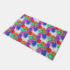 Padrão de flor artística divertida com tinta e aquarelas em vermelho, azul, rosa, branco, amarelo, verde, laranja, roxo com pequenos círculos verdes sobre fundo branco. NOTA: projetado para ajustados de 24" x 36" ou menores. Trabalho de arte originalmente por TamiraZDesina.