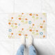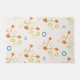 Este padrão de abstrato inspirado na era atômica tem linhas e círculos se conectando. O esquema de cores é verde-claro, laranja-claro, laranja-queimado e azul-turquesa.