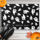 Bem-vindos convidados em estilo festivo com esta porta de Halloween apresentando um padrão ousado de fantasma em um fundo preto. O simples design preto e branco combina estilo mínimo moderno com diversão assustadora e você pode personalizá-lo com seu nome de família para um toque especial.