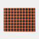 Grande porta decorativa que mostra a foto de um colarinho laranja e amarelo Dahlia florescendo sobre fundo preto e impresso em padrão repetitivo. Utilizar no interior ou em áreas de acesso cobertas. Um design floral adorável!