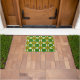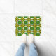 O design geométrico vibrante apresenta formas coloridas ousadas com motivos florais simétricos, oferecendo um toque vivo e artístico.