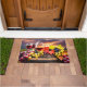 Um tapete de porta do campo de vinho para a sua decoração! Bonito e colorido, copos de vinho com folhagem de outono e uvas no barril de vinho e no céu bonito. Um tapete de porta giro e bonito, ao ar livre, que não só é útil como bonito.