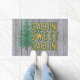 Um tapete porta da frente para dar as boas vindas a todos aqueles que amam suas cabines de madeira. Texto "Cabina doce" em madeira de cinza de penas