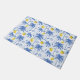 Tapete de Boas-vindas Palmeiras de Toalete Azul Limões. Traga um toque de charme tropical costeiro para a decoração da sua casa com este design que apresenta um fundo listrado azul claro adornado com palmeiras azuis desenhadas e limões amarelos vibrantes. Adicione elegância sofisticada ao seu espaço de convivência com este design original e único.