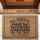 Bem-vindos convidados com um lembrete lúdico de quem realmente está no comando desta porta personalizada "Todos os Convidados Devem Ser Aprovados Pelo Cachorro". O adorável detalhe de impressão de pata e o nome de família personalizável adicionam um toque encantador a esta porta funcional e humorística. Feita de coir durável, é perfeito para aprisionar sujeira e escombros enquanto mostra seu amor pelo seu amigo peludo.
