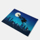 Ilustração de papais noeis Sleigh: Uma carona na noite sobre o horizonte de uma cidade com o céu noturno e a lua brilhante e estrelas ao fundo.