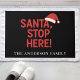 Um fundo preto, texto vermelho. Personalize e adicione seu nome de família. Texto: Papais noeis, parem aqui!