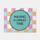 Padrão legal, azul, branco alaranjado e tabuleiro cor-de-rosa e um modelo de texto. Para editar, clique em personalizar e alterar as palavras.