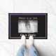 Porta mostrada com fundo preto, bordas roxas e douradas em torno de uma imagem de uma bíblia sagrada com uma imagem de coroa espinhenta formando uma forma cardíaca na creme central da bíblia impressa no centro da porta. Ele é Risen em grande texto branco embaixo da imagem. Acima estão as palavras "Bem-vindo à nossa casa".