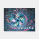 Esta imagem fractal multicolorida sugere que a luz de fundo passa através de plástico translúcido, gravado e pastel. A leitura personalizável de texto, "WELCOME" também é exibida.