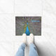 Esta esteira bem-vinda caracteriza um pavão bonito que viva na fazenda da cavidade de Chatfield em Killingworth, Connecticut. Esta fazenda é igualmente uma cama - e - o pequeno almoço…. um lugar muito original, bonito e repousante a permanecer ao visitar atrações de Connecticut! chfbandb.com e chatfieldfarm.com