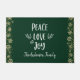 "Paz, amor e alegria." Uma visão divertida da tipografia branca, escrita à mão e champanhe, antigos flocos de neve de ouro e pontos de confete contra um fundo verde de caçador negro, ajuda-o a fazer compras no Natal e Ano Novo sempre que fortalecer a sua entrada com este na moda e um nome personalizado único tapete de boas-vindas de Natal. Cartões de correspondência e coordenação, envelopes, adesivos, presentes e outros produtos também estão disponíveis na minha coleção de lojas de "Paz de Natal, Amor e Joy". Que forma excelente de celebrar esta época festiva e de dar as boas vindas a todos que entram na sua casa! Basta digitar o nome de sua escolha e você pode personalizar facilmente esta porta. Por favor, me mande mensagens com quaisquer perguntas ou solicitações.