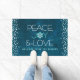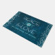 "Paz, alegria e amor." Uma ilustração divertida, divertida, leve turquesa e branca com flocos de neve e a tipografia moderna, sans serif em um rico e teal fundo azul de mármore azul turquesa ajuda você a lançar na temporada de festas. Pontos de confete de turquesa branca e leve nos lados completam a aparência. Melhore a sua entrada com este na moda e nome personalizado único Natal ou tapete de boas-vindas a Hanukkah. Personalize com seu nome, outra mensagem ou deixe o vazio. Estão também disponíveis cartões, envelopes, adesivos, sacos de tote, papel de embrulho, tabuleiros, decoração doméstica e muito mais. Que maneira divertida de celebrar esta época festiva e de dar as boas vindas a todos que entram na sua casa! Usando o modelo fácil de usar, digite seu nome de família, outra cópia ou deixe o vazio e você pode personalizar sem esforço esta porta de férias. Por favor, me mande mensagens com quaisquer perguntas ou solicitações.