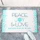 "Paz, alegria e amor." Uma ilustração divertida, divertida, turquesa em flocos de neve e a tipografia moderna, sans serif, em um fundo branco e limpo, ajuda você a lançar na temporada de festas. Os pontos de confete azul turquesa nos lados completam a aparência. Melhore a sua entrada com este na moda e nome personalizado único Natal ou tapete de boas-vindas a Hanukkah. Personalize com seu nome, outra mensagem ou deixe o vazio. Estão também disponíveis cartões, envelopes, adesivos, sacos de tote, papel de embrulho, tabuleiros, decoração doméstica e muito mais. Que maneira divertida de celebrar esta época festiva e de dar as boas vindas a todos que entram na sua casa! Usando o modelo fácil de usar, digite seu nome de família, outra cópia ou deixe o vazio e você pode personalizar sem esforço esta porta de férias. Por favor, me mande mensagens com quaisquer perguntas ou solicitações.