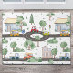 Tapete Pequena Cidade e Carros Padrão Colorido