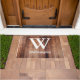 Pranchas de madeira marrons médias belamente rústicas com sua escolha da grande letra branca do monograma com nome de família completo no roteiro abaixo dele. Este doormat é simplesmente bonito em toda a entrada!
