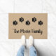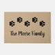 Esta porta divertida para amantes de animais de estimação apresenta texto moderno e uma faixa de marcas de impressão de pata de animais de estimação. Perfeito para amantes de gatos ou cães! Personalize com o monograma do sobrenome da sua família no escrevendo de escrita manual. Inclui um fundo rústico neutro do que texturizado.