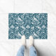 Porta em um William Morris, design de papel de parede Art Nouveau de faisões e lebres entre folhas, vinha e flores - branco sutilmente texturizado sobre fundo azul-denim/indigo