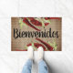 Pimenta vermelha venenosa com algum texto espanhol " Bienvenidos " Pormalho com algum toque nostálgico e burlap parecem fundo . Design por Alma Wad ,